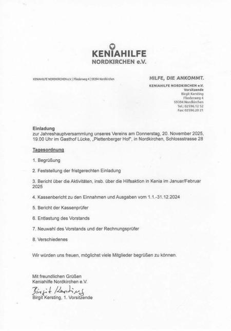 Am Donnerstag, 7.11.2024, beginnt um 19.30 Uhr in Nordkirchen, Gasthof Plettenberger Hof, ein Info- und Bilderabend über unsere letzte Hilfsaktion in Kenia. Wir laden dazu alle Interessierten ganz herzlich ein!