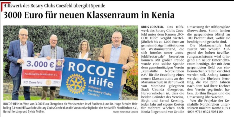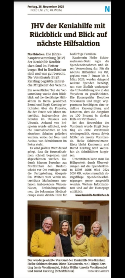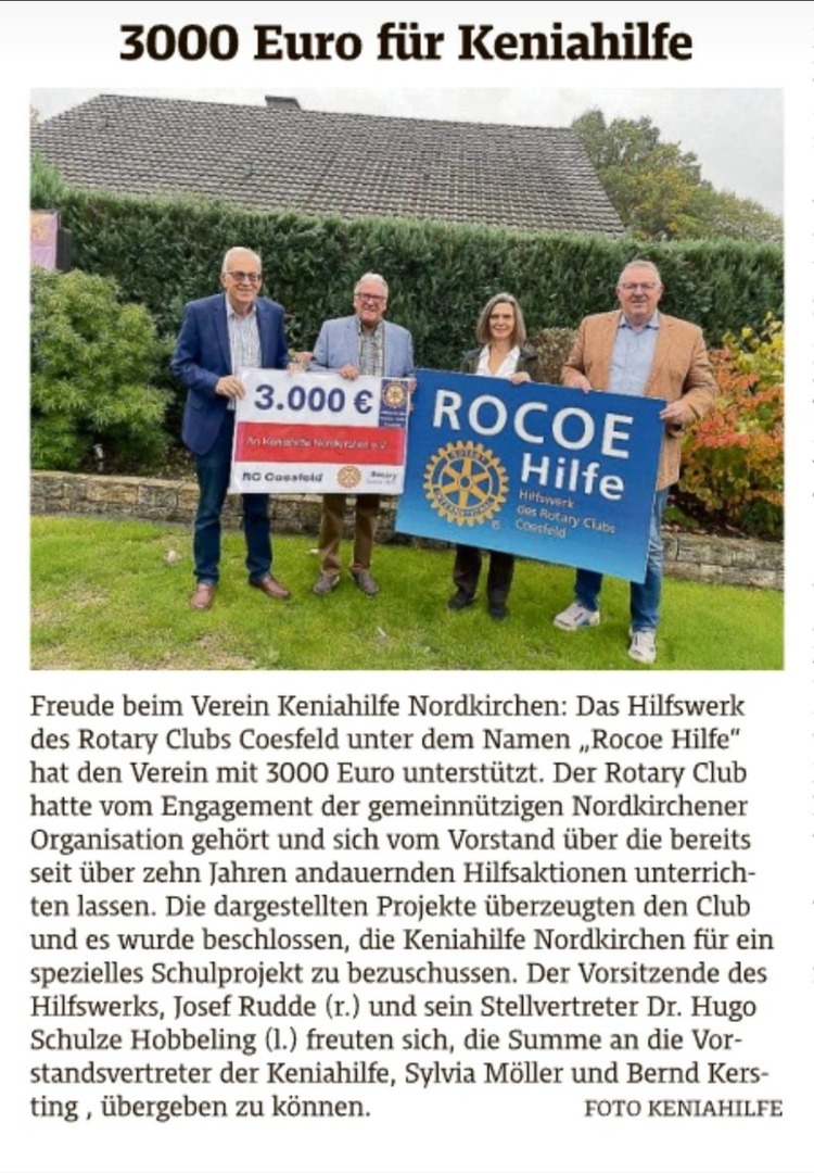 Die Keniahilfe Nordkirchen freut sich über weitere finanzielle Unterstützung, damit im Frühjahr 2023 die nächste Hilfsaktion erfolgreich verlaufen kann. Steuerlich abzugsfähige Spenden können auf das Vereinskonto
