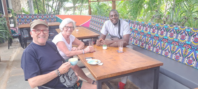 Wir haben uns mit Nzai getroffen. Er ist Kellner in unserem Hotel und ist uns seit Jahren behilflich, Kontakte in der Umgebung zu knüpfen. Er vertritt unseren Verein auch in Zeiten unserer Abwesenheit und ist ein vertrauensvoller "Mitarbeiter".