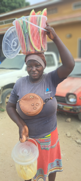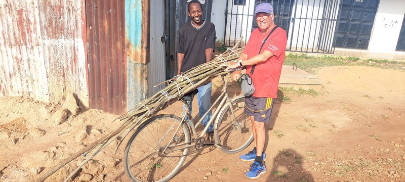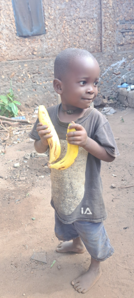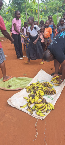 Morgen ist ein Besuch in einem Kindergarten sowie in einer Schule geplant. Bei unserer Bananenhändlerin haben wir 300 Bananen für morgen geordert.