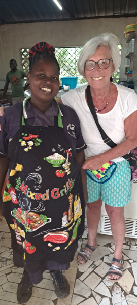 Am frühen Nachmittag gab es noch einen Termin mit Susan. Sie ist Lehrerin in der Harambeeschule in Likoni und unsere Ansprechpartnerin während der vielen Monate, die wir nicht hier sein können. Dann erledigt sie für unseren Verein Termine vor Ort und kümmert sich darum, dass, wenn wir es vom Vorstand unseres Vereins genehmigen, auch Spendengelder bis zu einer gewissen Höhe weitergeleitet werden. Wir kennen sie schon über 12 Jahre und haben ein sehr vertrauensvolles Verhältnis. Heute konnten wir mit ihr einige Dinge besprechen. Für die Harambeeschule, die wir noch besuchen werden, hatte sie Kostenvoranschläge für neue Toiletten mitgebracht. Der Auftrag wurde von uns erteilt, ein Teilbetrag angezahlt und nach Fertigstellung und "Bauabnahme" in 5 Wochen erfolgt die Restzahlung.