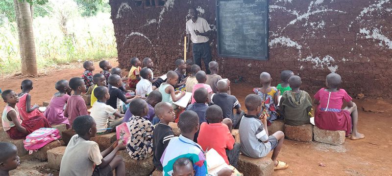 Wir waren völlig überrascht über die Situation. In einem "Gebäude" sahen wir Bänke und Steinblöcke und konnten es nicht fassen: Diese Steine dienten den Kindern als Sitzplätze beim Unterricht! An diesem ersten Besuch haben wir vorsichtig den Kontakt zu den Kindern aufgebaut. Morgen kommen wir wieder!