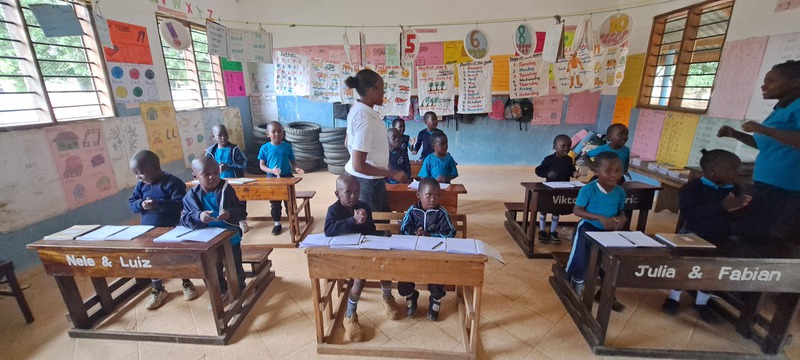 Ihr Vater war früher Lehrer und Pastor. Heute unterrichtet er zusammen mit zwei anderen Personen rd. 120 Kinder aus der weiteren Umgebung. Hier fahren keine Busse oder andere Autos, die nächste Schule ist viele km weit entfernt.