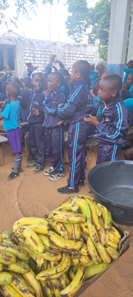 In der Adventisschule gehen die von uns mitfinanzierten Bauvorhaben gut voran, alles läuft nach Plan. Wir haben uns gemeinsam die einzelnen Klassenräume angesehen und natürlich dem Wunsch der Kinder gefolgt: Es gab 150 Bananen!