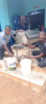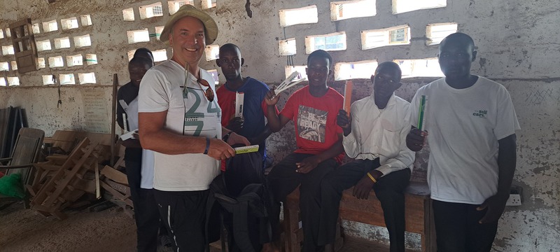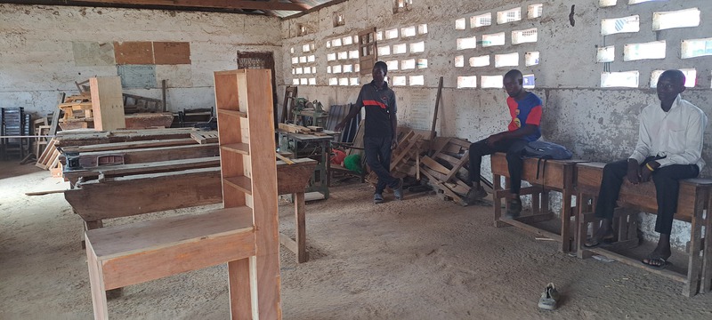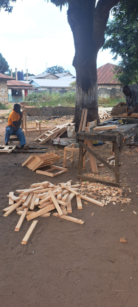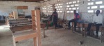 Weiter ging es zu "unserem Schreiner". Er hat ja von uns den Großauftrag 50 Stühle und Pulte innerhalb kurzer Zeit fertigzustellen. Wir konnten uns davon überzeugen: Er ist mit seinen Mitarbeitern auf einem guten Wege!