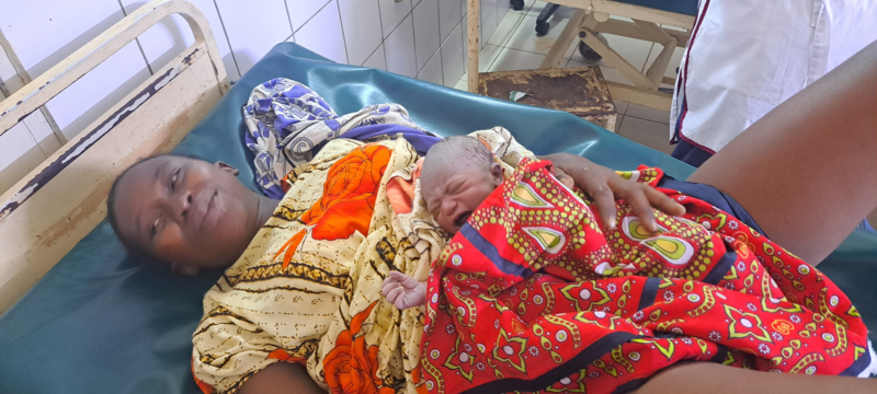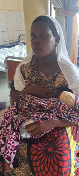 Weiter ging es zur Klinik von Dr. Bakari. Dort wurde grade eine junge Mutter wegen einer starken Malariaerkrankung stationär behandelt.