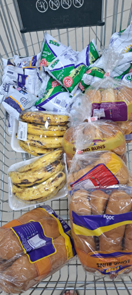 Zunächst haben wir besonders gefragte Lebensmittel wie Milch und Brot sowie Bananen eingekauft, dann ging es los. Einige TShirts konnten wir auch noch mitnehmen.