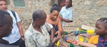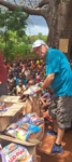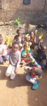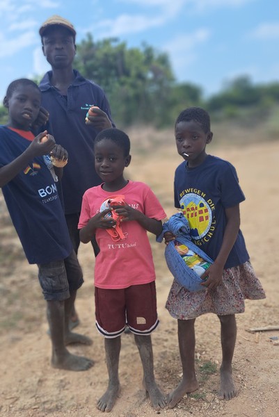 Im Umfeld der Schreinerei gibt es einen kleinen Verkaufsstand. Den Händler kennen wir schon seit Jahren. Heute haben wir ihn gefragt, was es kosten würde, die gesamte Ware zu kaufen. Ganz schnell waren wir uns einig und die Nachbarn sowie Kinder wurden von uns eingeladen. Kosten für alles: 35 Euro! Freude und Begeisterung: Unbezahlbar!